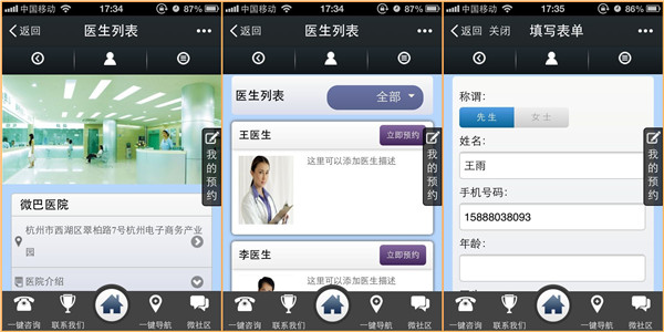 醫療行業信息化建設剛需功能微掛號重磅上線,基于微信公眾平臺接入掛號預約功能,解決掛號排隊問題,實現預約信息自動錄入系統,方便管理和患者檔案建立。 1、醫院簡介、導航功能 醫院簡介便于了解醫院特色和優勢,以及醫院個方面的信息。導航功能精準定位,為您提供不同出行方案,公交、自駕輕松規劃。 2、醫生列表、立即預約 醫生列表可自由添加,不同科室的不同